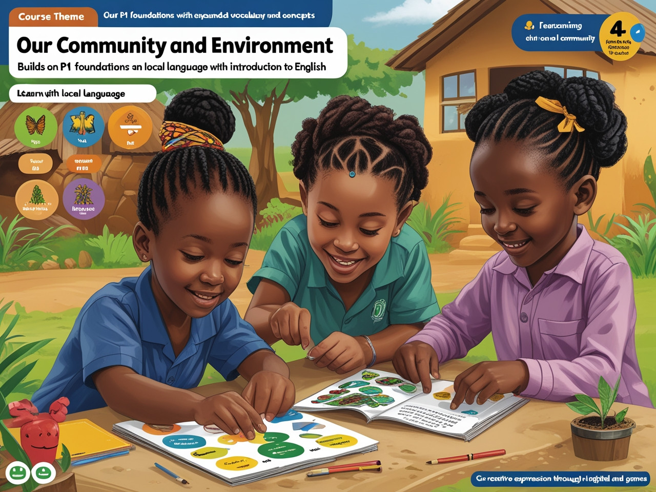 Final year of thematic learning in local language. Enhanced focus on reading comprehension, writing skills, and mathematical concepts. Digital content includes craft activities, basic technology, and preparation for transition to English instruction.